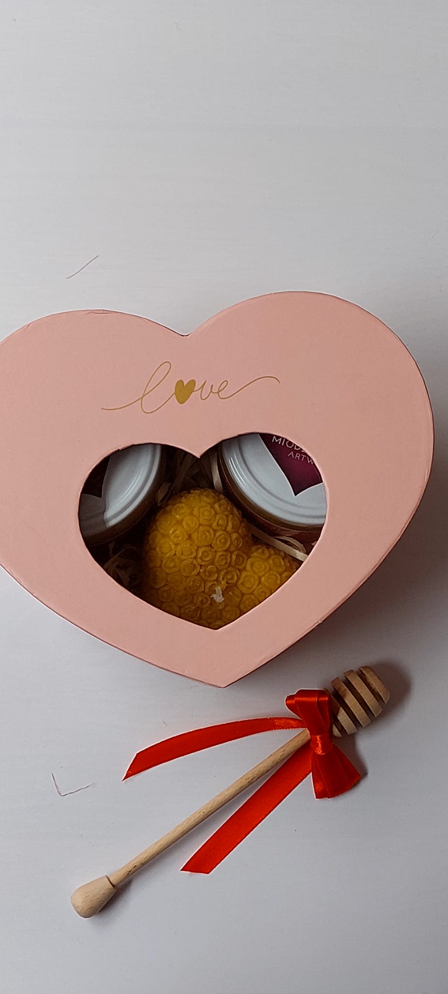 ❤️  Zestaw zawiera świecę z naturalnego wosku i pałeczką do miodu