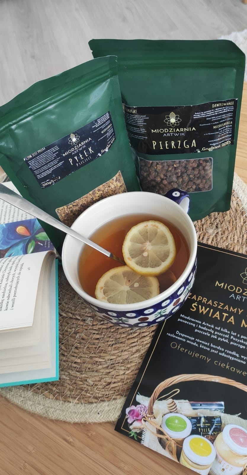 Zapraszamy do nabycia naszego pyłku pszczelego – najlepszego, naturalnego antybiotyku. Pyłek pszczeli jest pyłkiem kwiatowym, który transportowany jest przez pszczoły do ula. Wykryto w nim ponad 250 korzystnych dla zdrowia substancji, dlatego ma niezwykle szerokie zastosowanie – od medycznego po kosmetyczne. Działa odżywczo, odtruwająco, antydepresyjnie, antyalergicznie, przeciwzapalnie i przeciwmiażdżycowo. Wspomaga walkę z cukrzycą. Może być przyjmowany w naturalnej postaci, wymieszany z ulubionym jogurtem lub płatkami śniadaniowymi. Swoją przyswajalność zwiększa po wcześniejszym namoczeniu w wodzie lub zmieleniu.